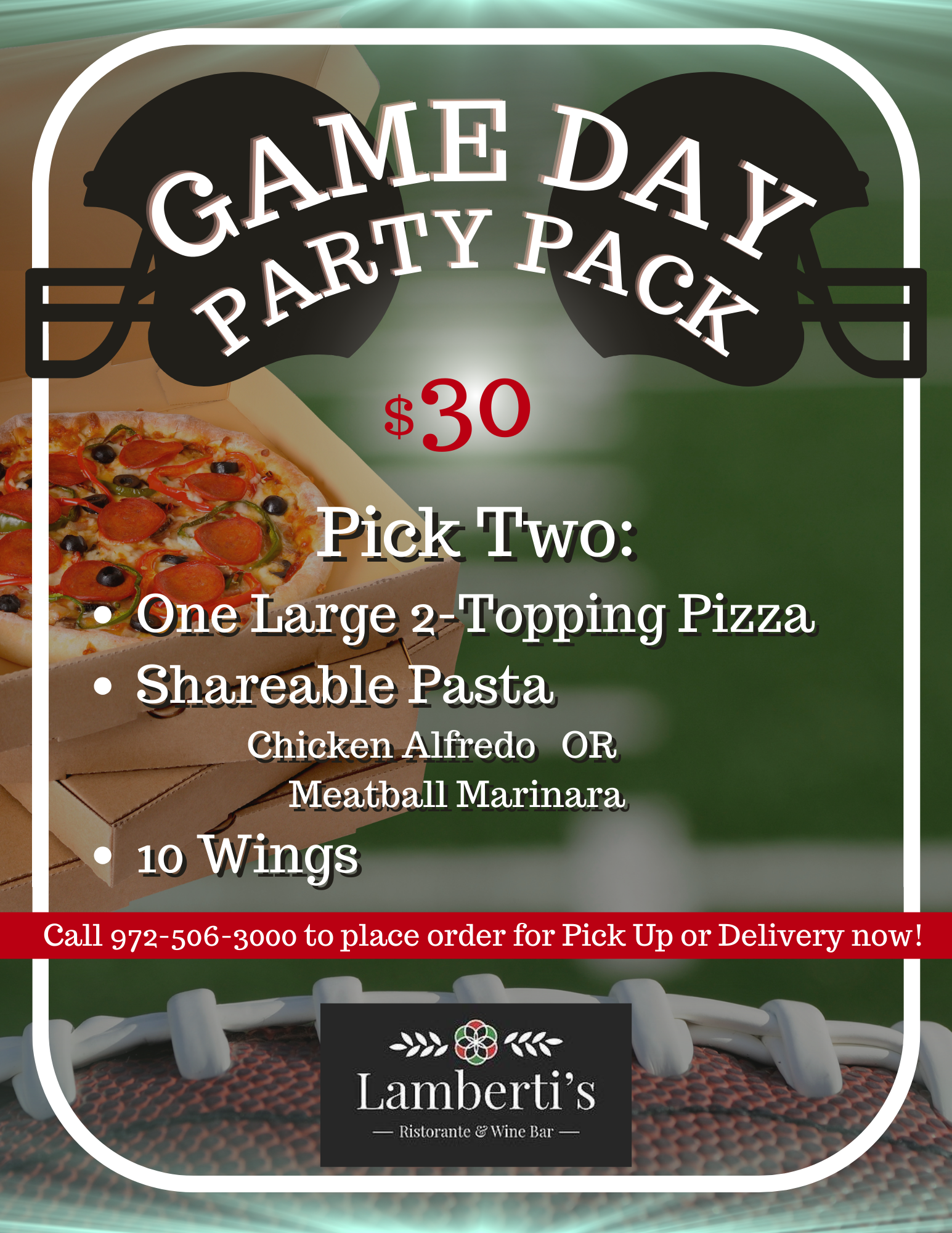 Call us at (972)-506-3000 or book a table through Open Table:
